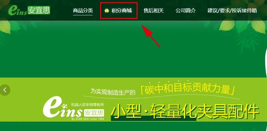 点击eins商城网站上方导航栏“积分商城”